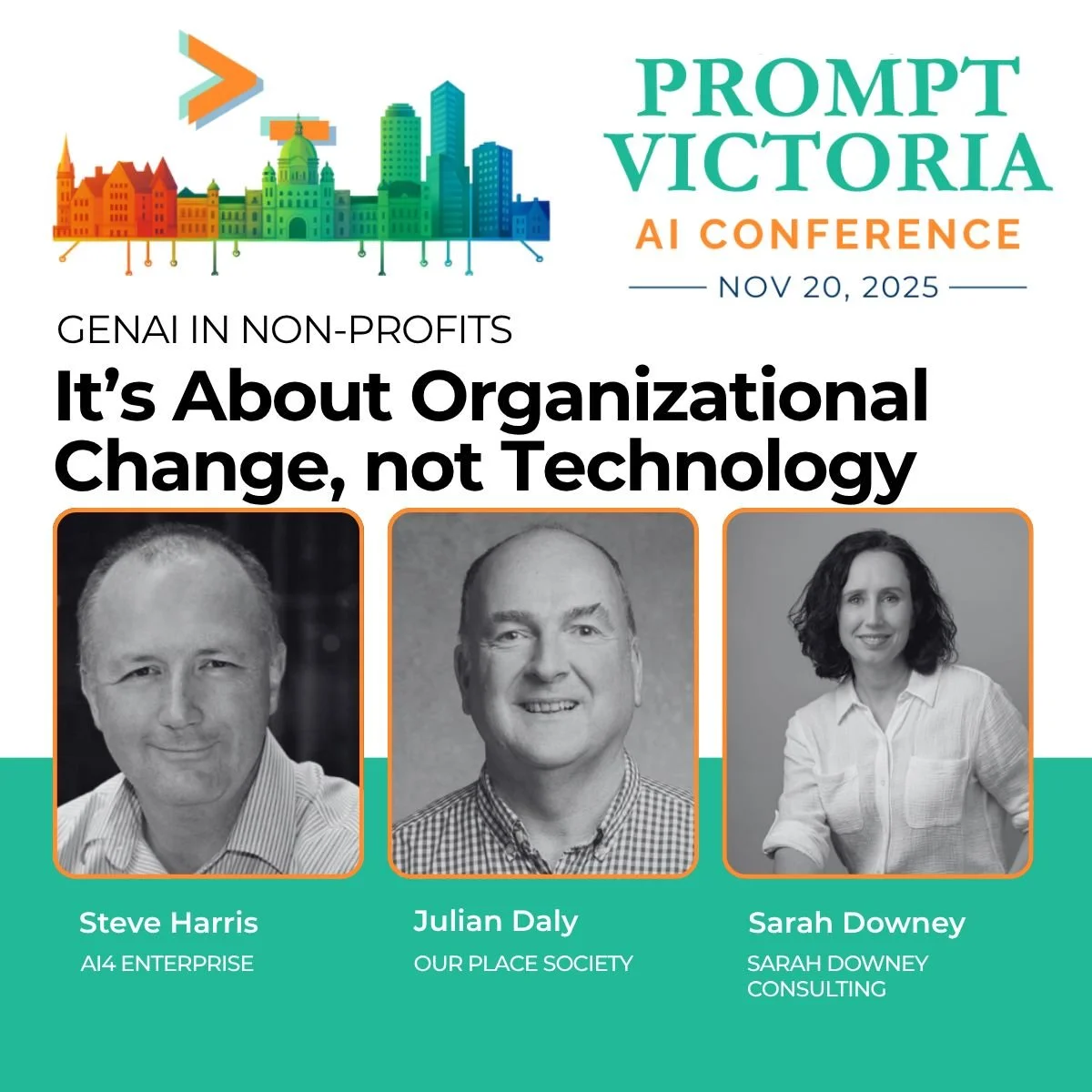 Implementing Generative AI is not primarily a technology initiative, it’s an exercise in organizational change. This session takes participants on a journey from strategy to implementation. Julian Daley (CEO) opens with the realities and challenges non-profits face today. Sarah Downey follows with guidance on maintaining organizational values and trust in the face of AI. Steve Harris concludes with the practical side - how to implement Generative AI and realize tangible results. Together, they show that GenAI adoption is less about technology and more about organizational change.